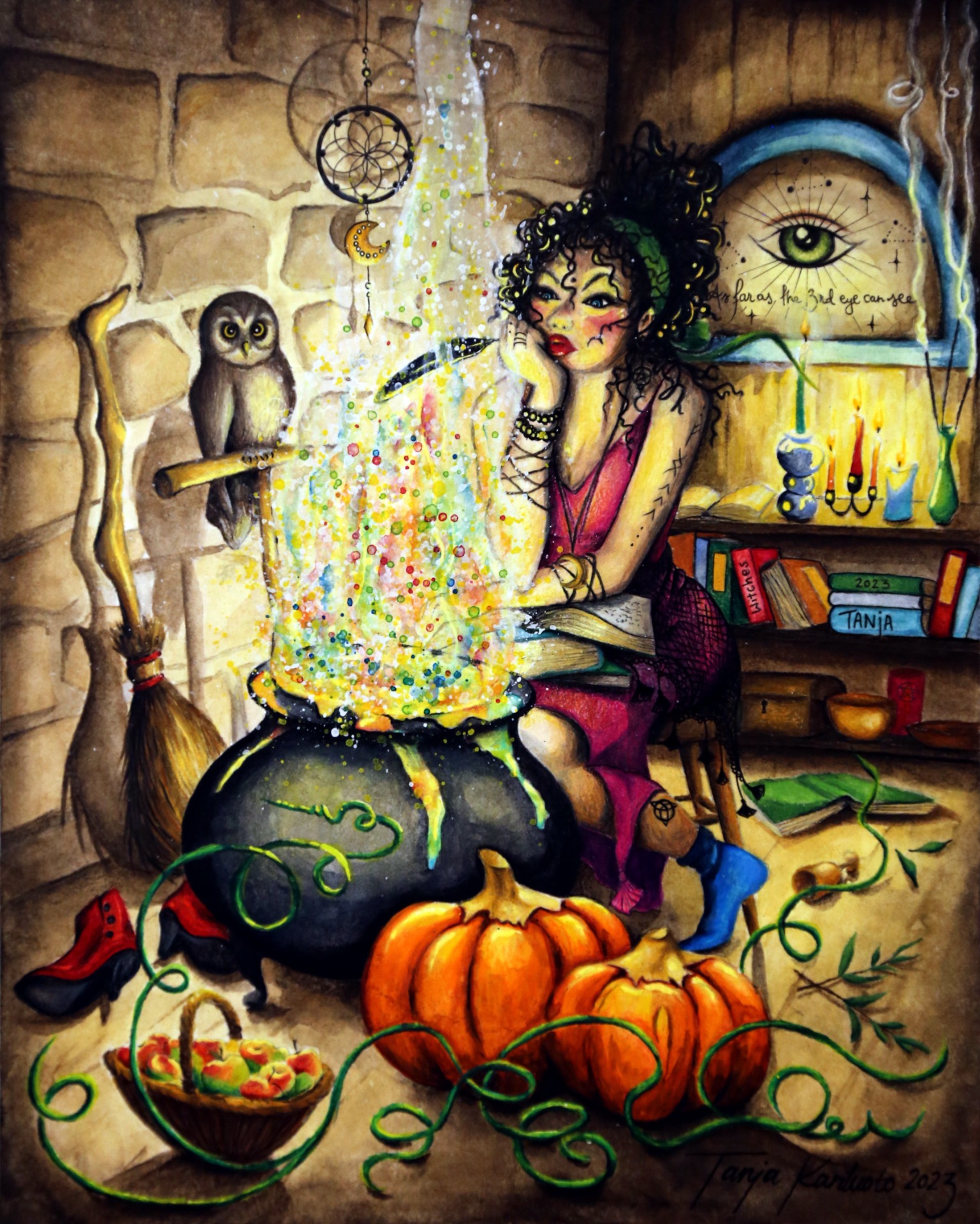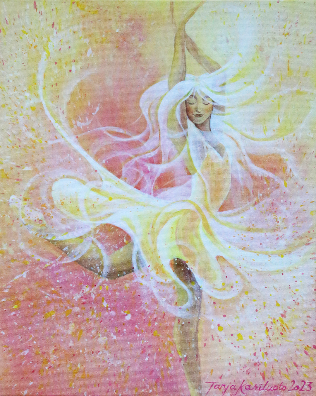 The way I have learned to do art is "let it flow". Then it happens, and the result is also satisfying. Usually I have or I get the image to my head, and if the theme resonates, it will work. Sometimes I already see the picture, other times I kinda have to built it piece by piece. That is a technique that has magic in it, 'cause the result is completely unknown, but perfect! Those paintings often tells a story straight from the soul, and reflects deepest of my desires. It's like the hihger self is sending a message to me. It's wonderful and magical!